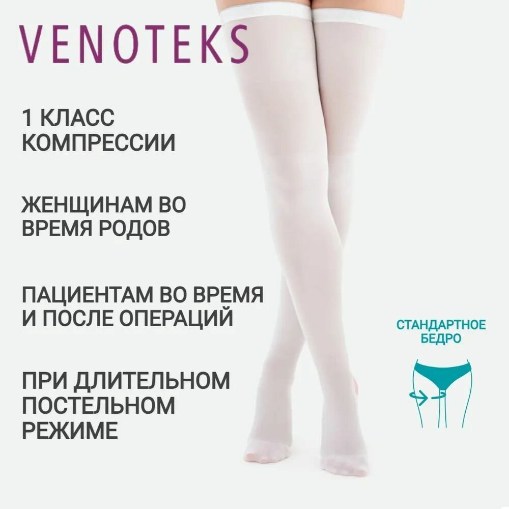 Чулки госпитальные Venoteks противоэмболические с силиконовым фиксатором 1-го класса компрессии, 1A210 (Унисекс, Открытый, S)
