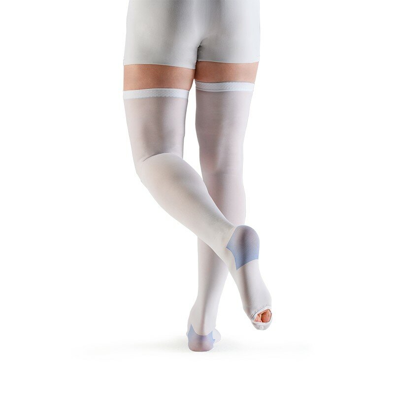 Противоэмболические чулки Hospital thrombo18 VENOTEKS 1A210, 1 класс, открытый носок, противоварикозные, Размер M, белый