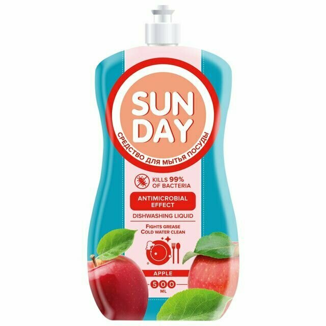 Средство для мытья посуды Sunday "Яблоко" антибактериальное, 500 мл 9241533