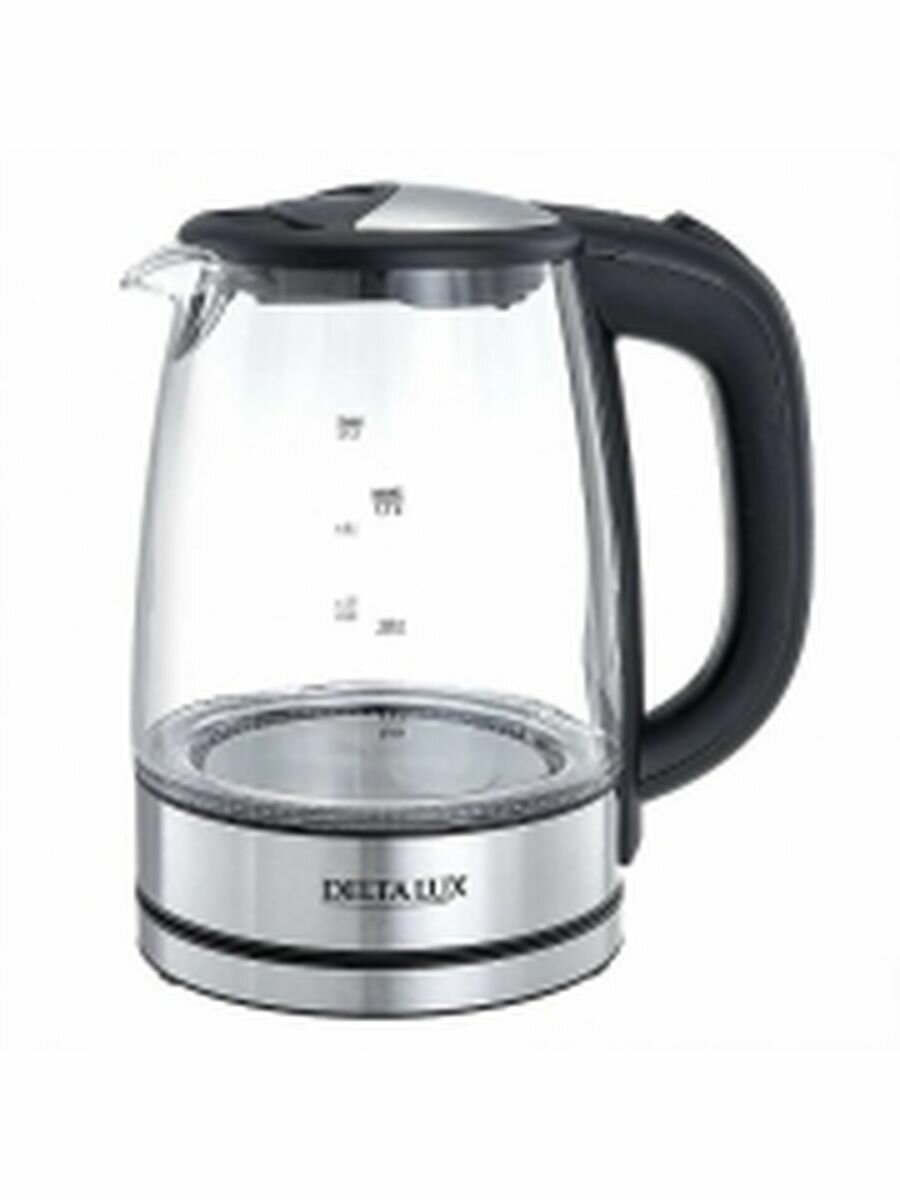Электрочайник DELTA LUX DL-1204В корпус из жаропр. стекла, чёрный: 2200 Вт, объем 1,7 литра