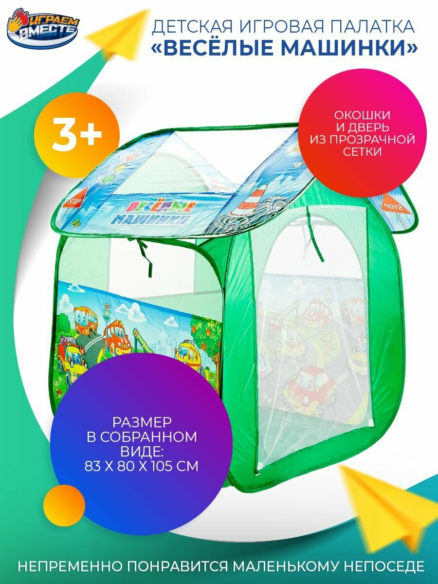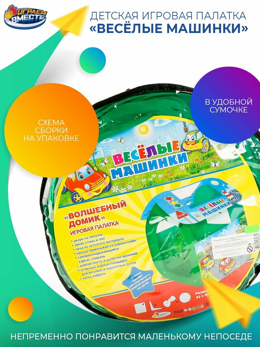 Палатка "играем Вместе" "веселые Машинки" 83*80*105СМ, В Сумке 4*38*38см 3+ Gfa-auto-r (24 .