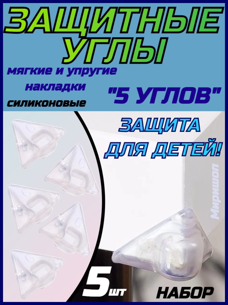 Защита от детей, накладки на углы силиконовые, прозрачные Baby Safety "Пять углов" - 5шт.