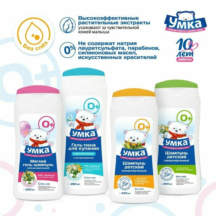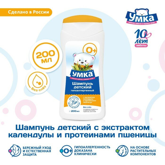 Умка Детский шампунь с экстрактом календулы и протеинами пшеницы 200 мл