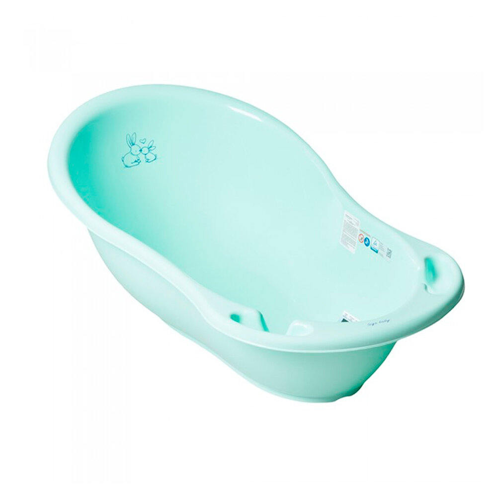 Ванна детская Tega Baby "Кролики" со сливом, 86 см, цвет бирюзовый