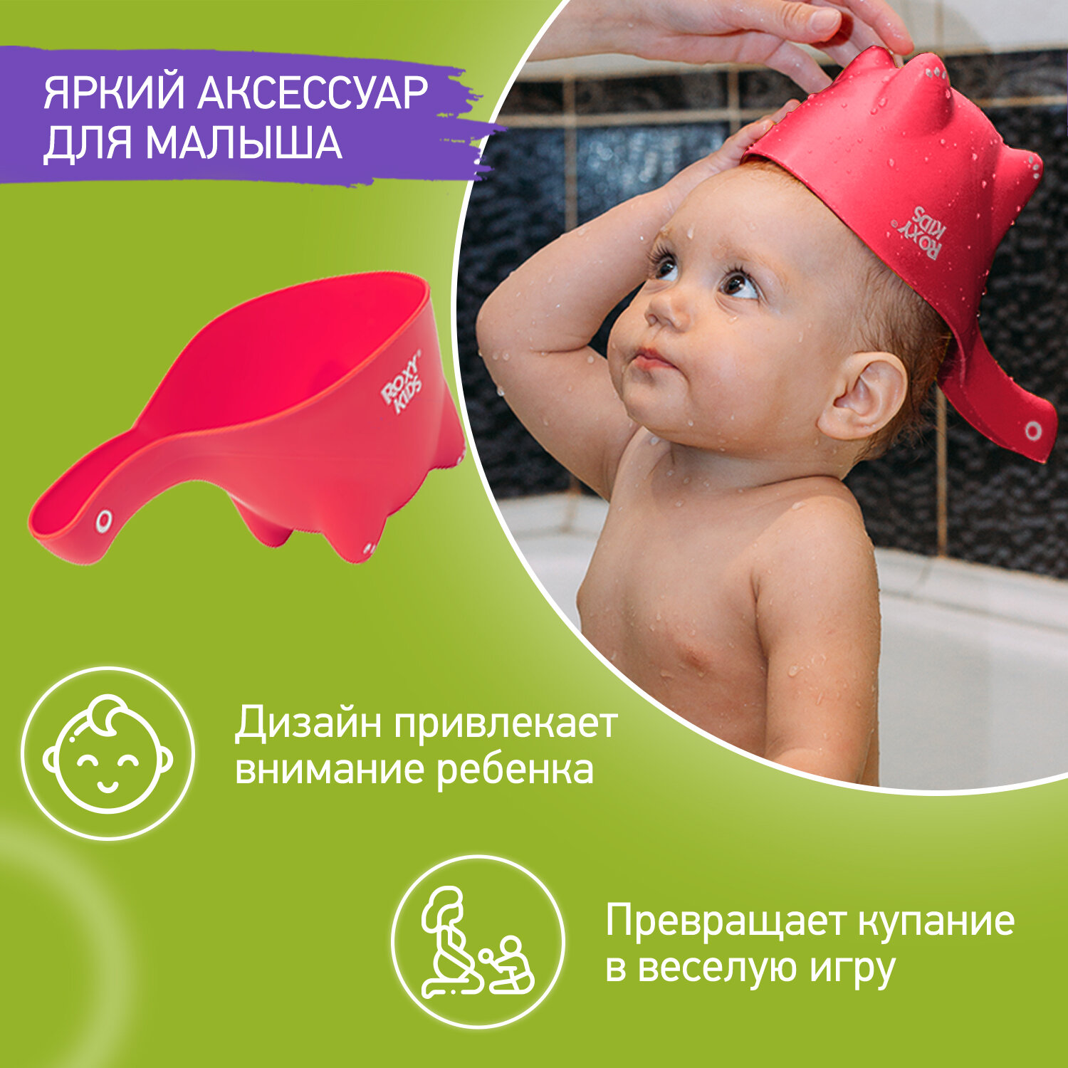 Ковшик детский для купания и мытья головы Dino Scoop от ROXY KIDS. Цвет фиолетовый.