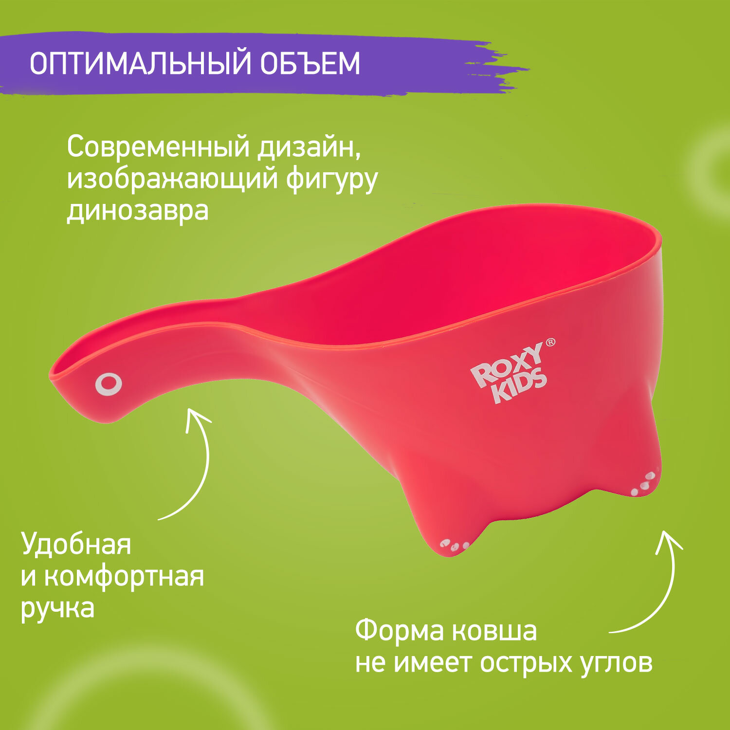 Ковшик для мытья головы ROXY KIDS Roxy-kids Dino Scoop, фиолетовый, RBS-002-V