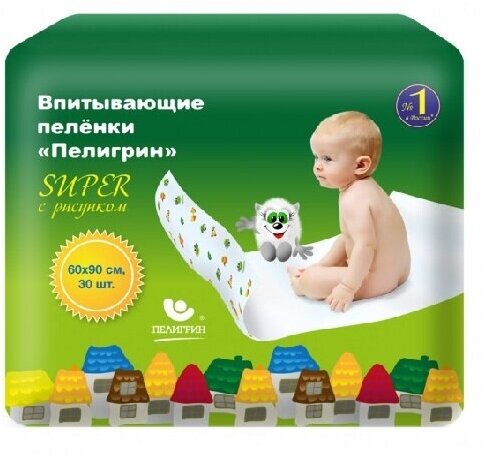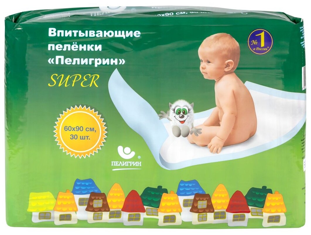 Пеленки впитывающие Пелигрин 60х90см, Super, 30шт/уп (М60х90/30S), 1 шт