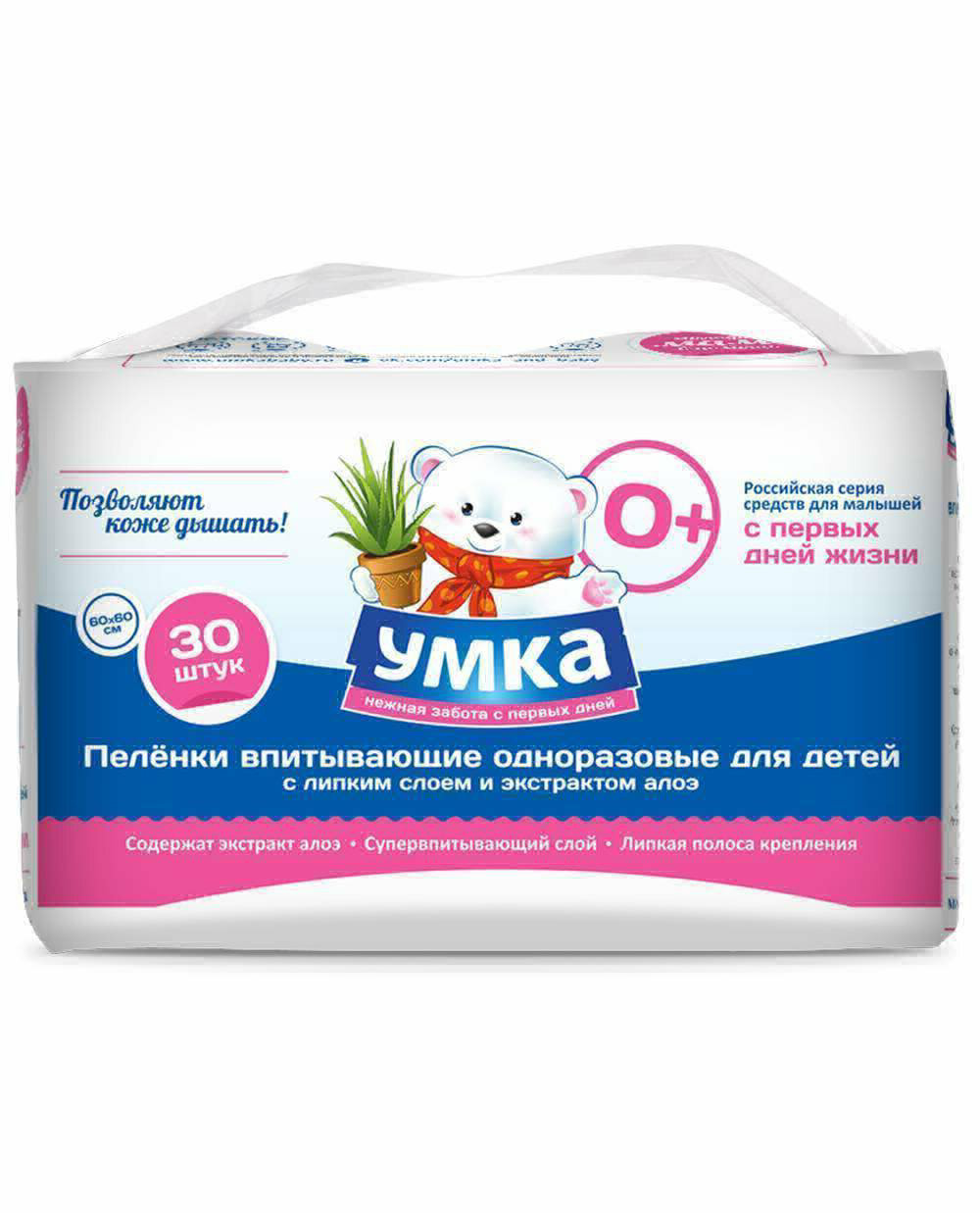 Одноразовая пеленка Умка с экстрактом алоэ 60х60, 30 шт.