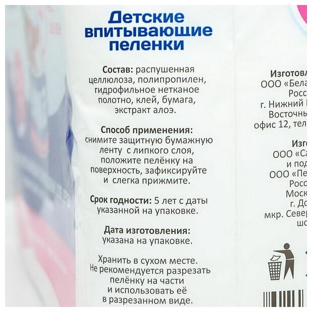 Впитывающие пеленки с экстрактом алоэ и липким слоем 30 шт.