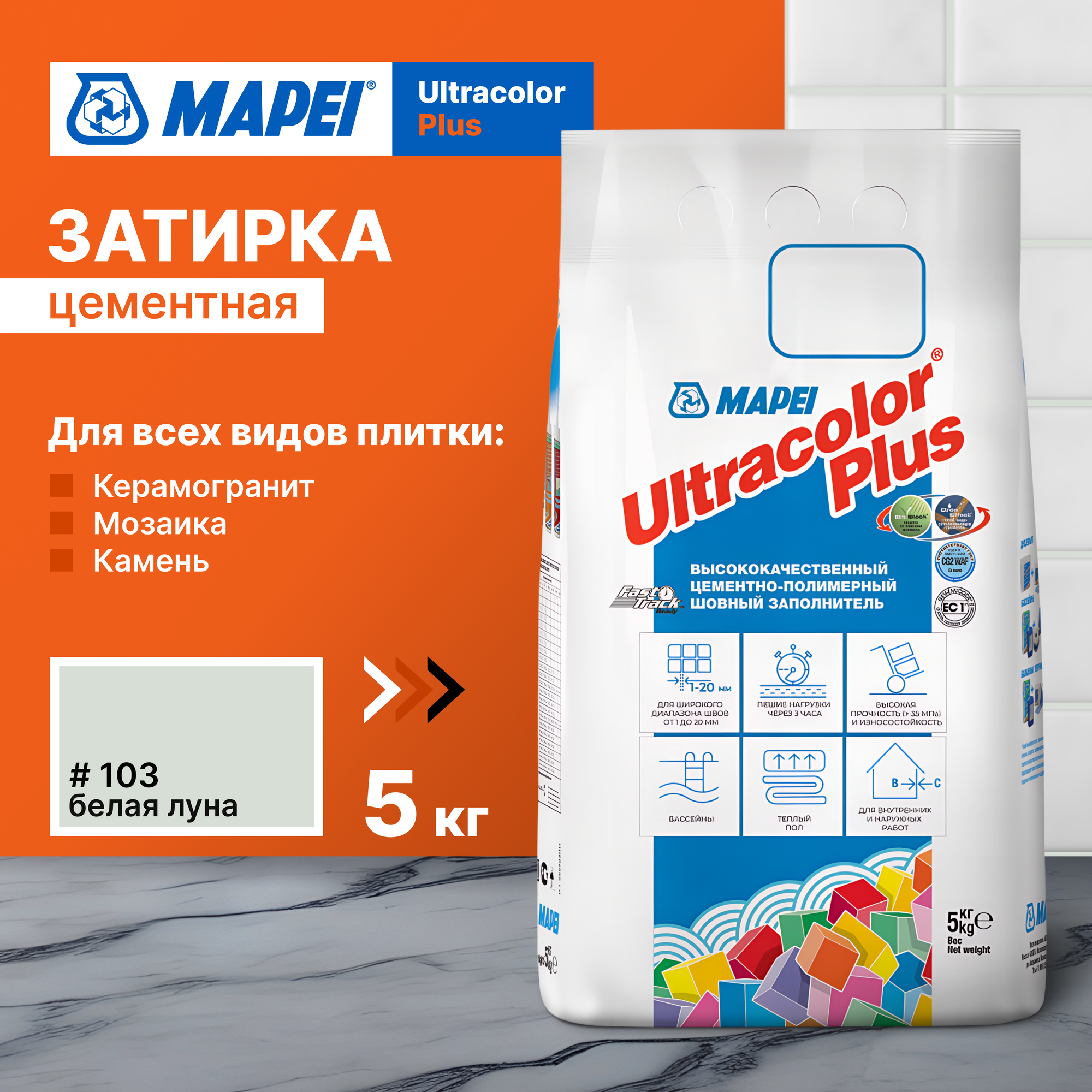 Затирка для плитки Mapei Ultracolor Plus №103 белая луна 5 кг