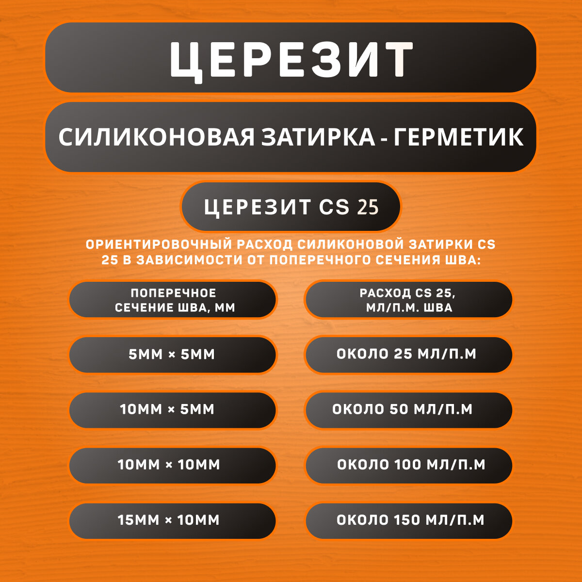 "Ceresit" CS 25. Силиконовая затирка-герметик, цвет - натура