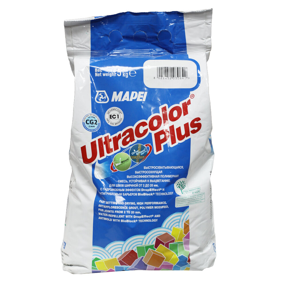 Затирка для плитки Mapei Ultracolor Plus №100 белая 5 кг