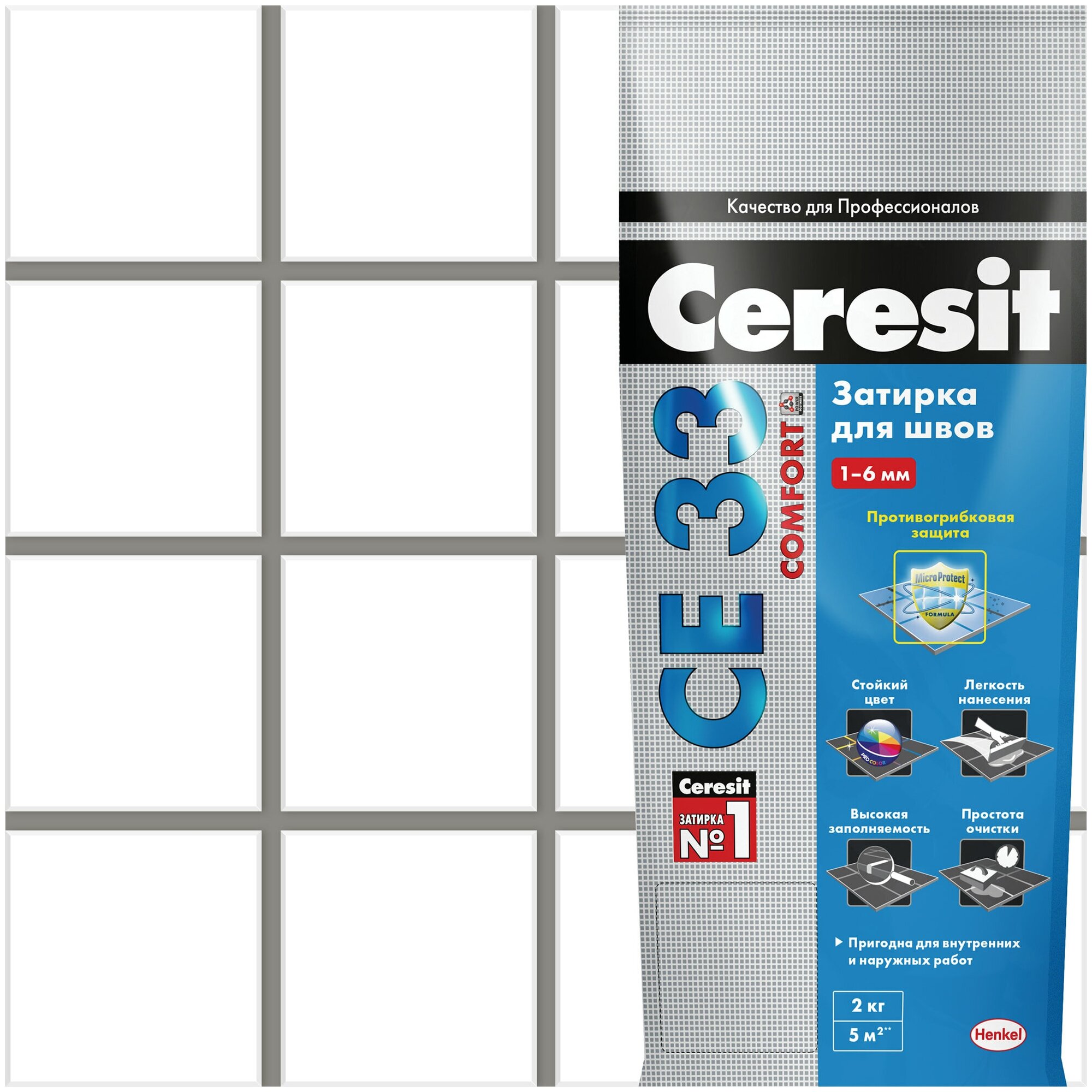 Затирка CERESIT СЕ 33 COMFORT № 01, белая, 2 кг