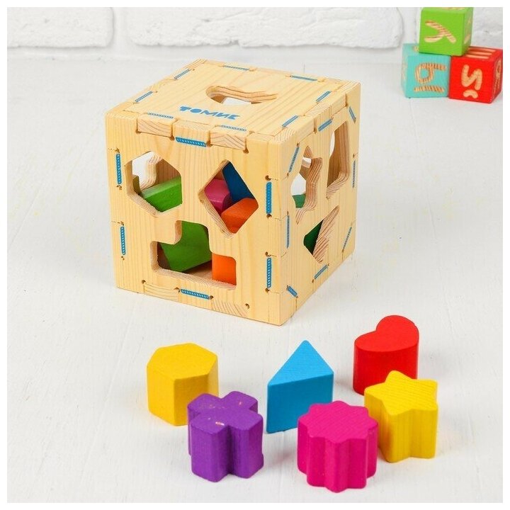 Деревянный сортер Томик "Геометрические фигуры", развивающий игровой набор из 14 деталей