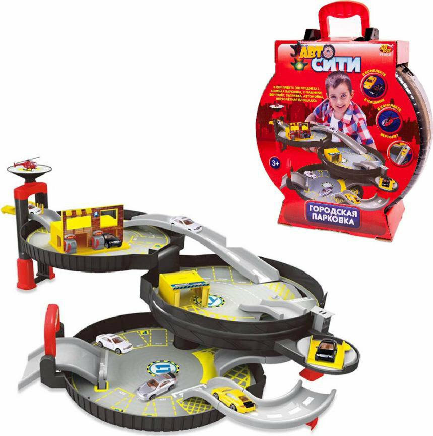Набор игровой абтойс парковка авто сити 3-х уровневая в чемоданчике-автошине pt-00547(wa-d0125)