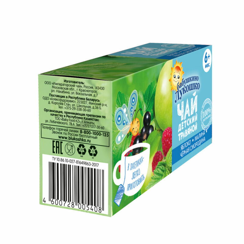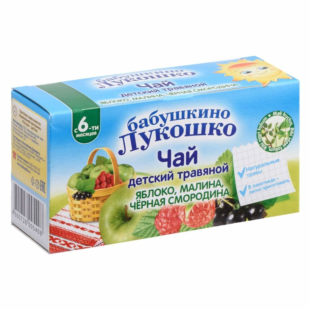 Чай для детей Бабушкино Лукошко Яблоко, малина, черная смородина 20 г, в пакетиках, 1 шт.