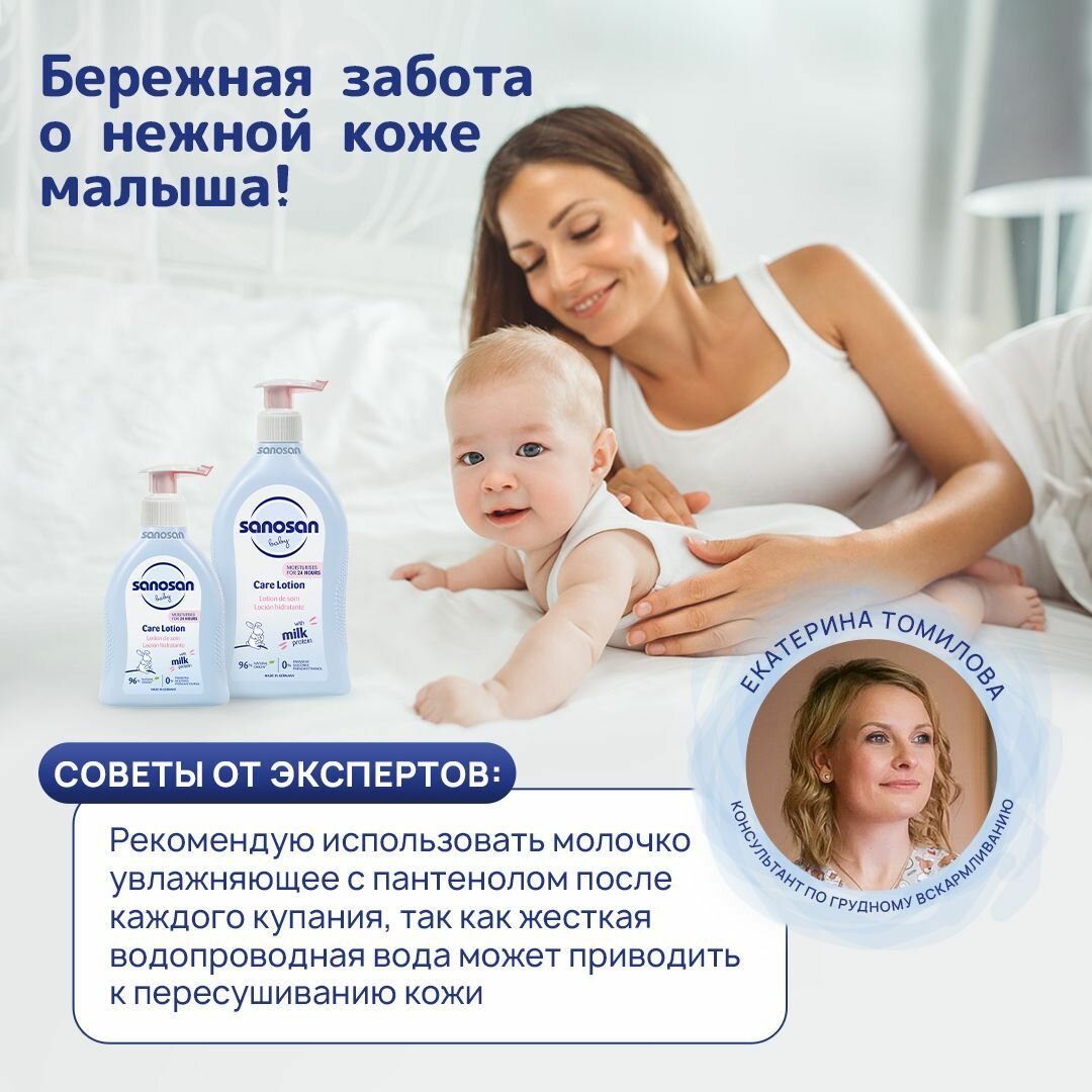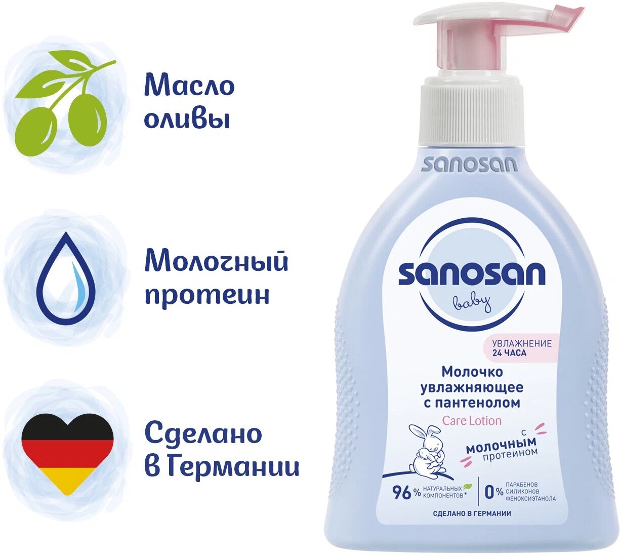 Sanosan Молочко увлажняющее с пантенолом, 200 мл/увлажняющее молочко для детей/Молочко для тела детское/Детское молочко для тела/увлажняющее молочко для тела/пантенол/увлажняющий крем для детей/крем после купания/пантенол крем