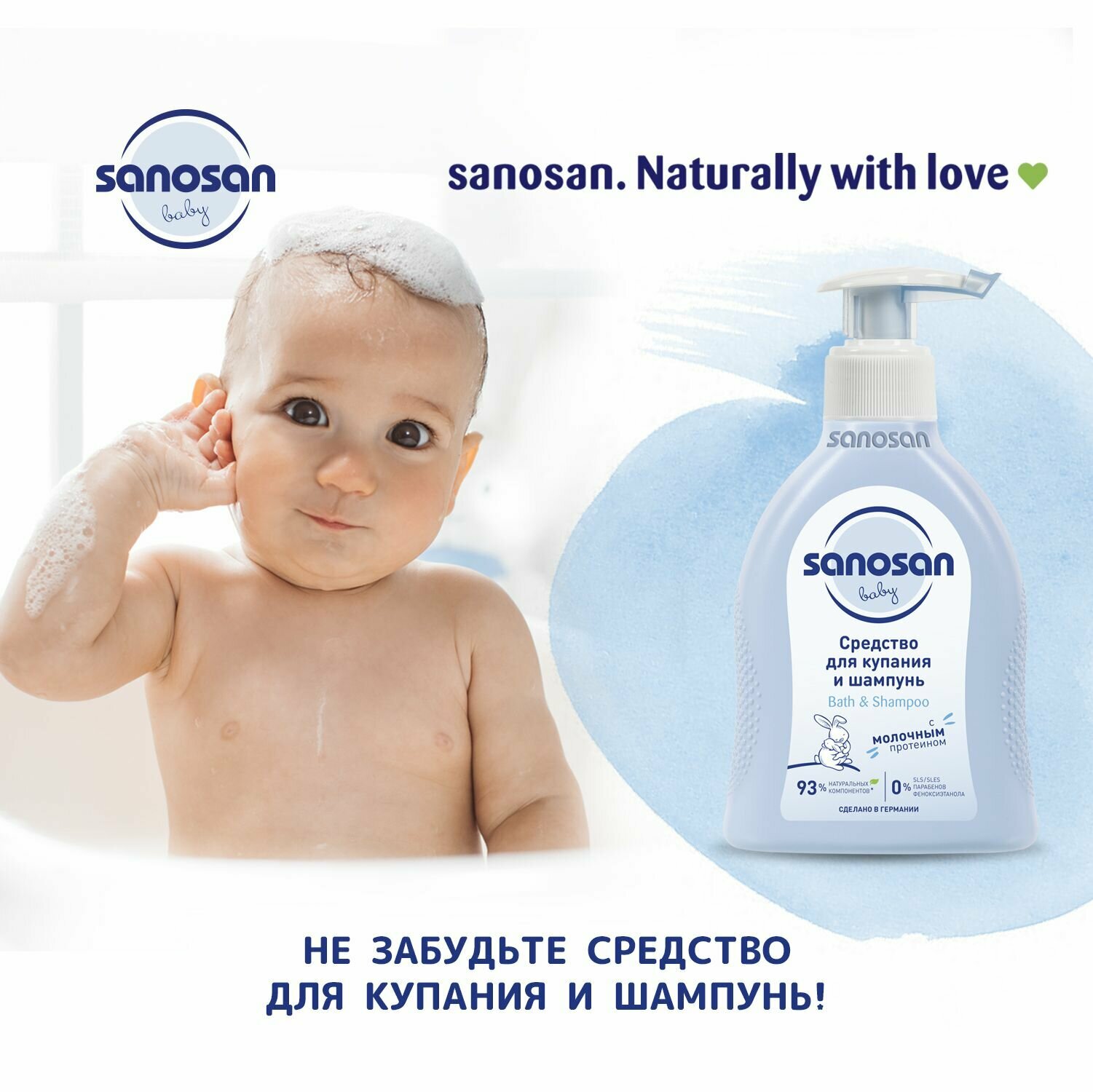 Молочко для новорожденных средство увлажняющее детское с пантенолом для детей после купания Sanosan 500 мл, детский смягчающий увлажняющий лосьон крем защита от раздражения для тела для малышей