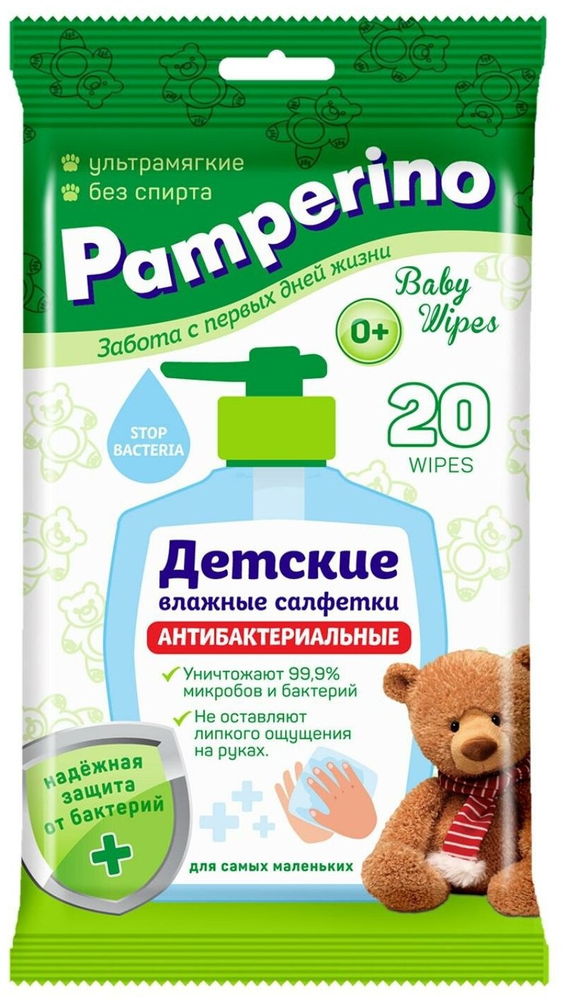 Влажные салфетки Pamperino Антибактериальные, 20 шт., 1 уп.