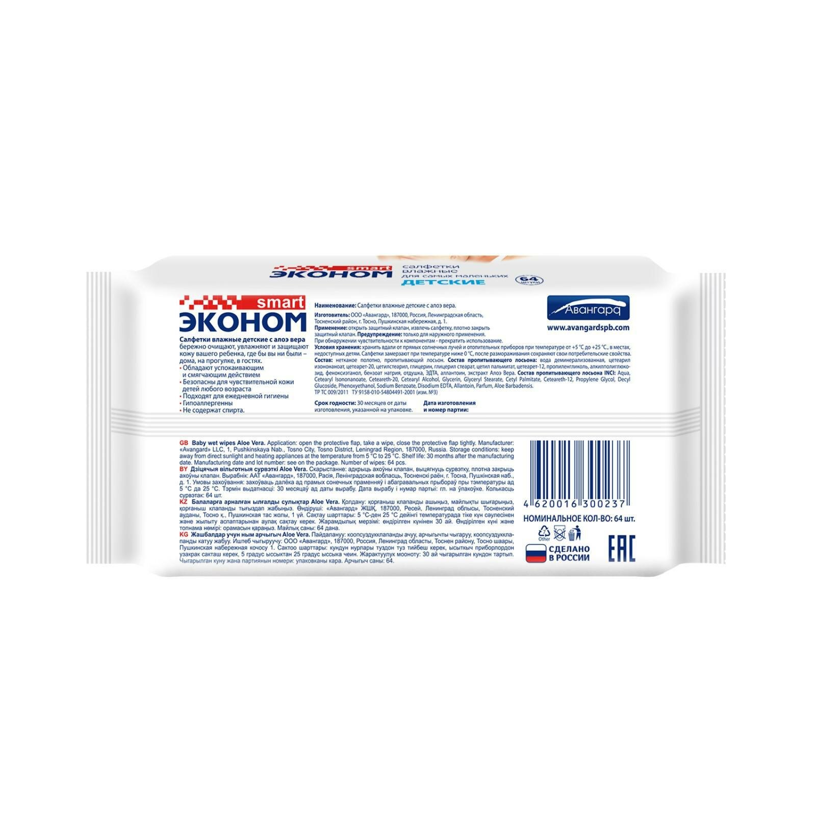 Влажные салфетки Эконом smart Детские с экстрактом алоэ вера, липучка, 64 шт.