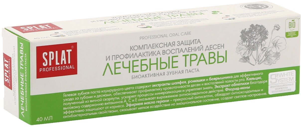SPLAT Professional Лечебные травы Биоактивная зубная паста для комплексной защиты и профилактики воспалений десен 100 мл