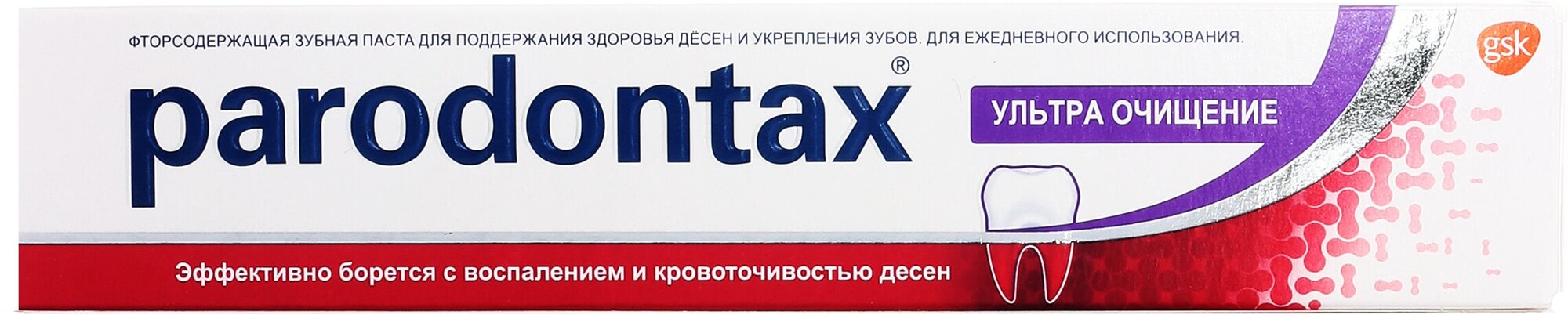 Зубная паста parodontax Ультра Очищение от воспаления и кровоточивости десен для удаления зубного налета, для глубокого очищения с фтором, 75 мл
