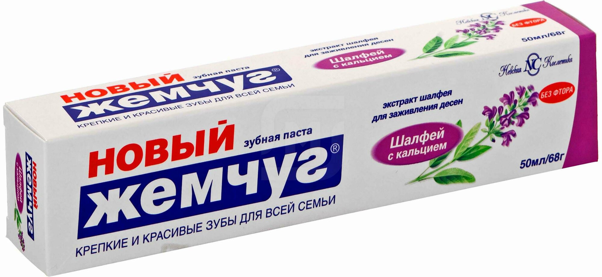Новый жемчуг Зубная паста, Шалфей с кальцием, 50 мл