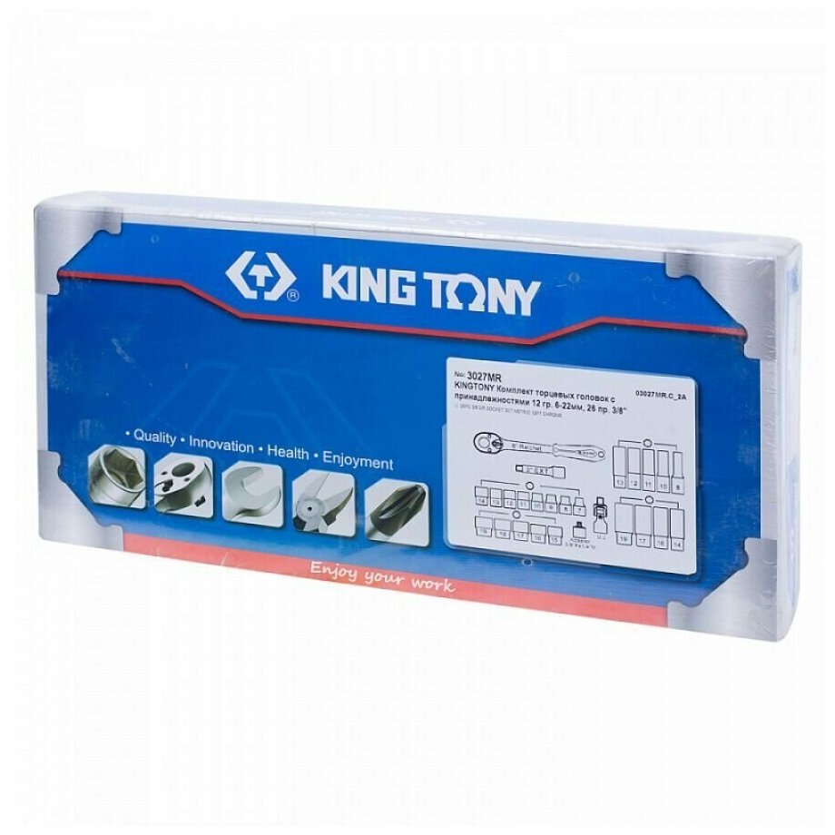 Набор торцевых головок с принадлежностями 3/8, двенадцатигранные, 6-22мм, 26 предметов KING TONY 3027MR