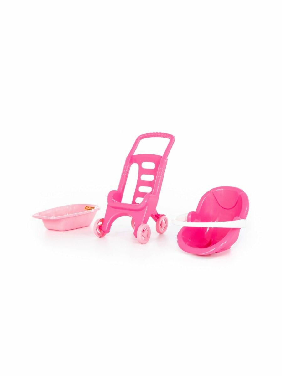 Коляска для кукол Полесье переноска и ванночка "Pink Line 3 в 1", в сеточке (42842)