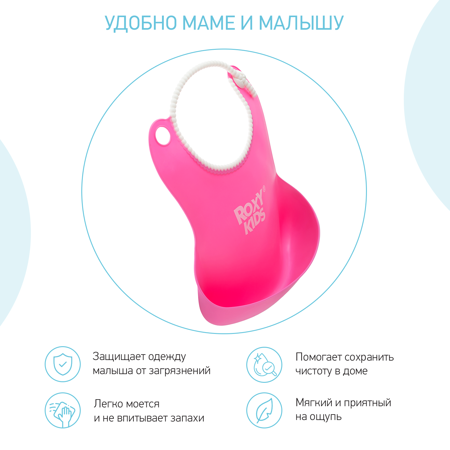 Слюнявчик детский, нагрудник для кормления ROXY-KIDS мягкий с кармашком и застежкой, цвет розовый