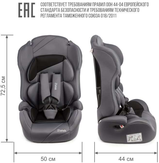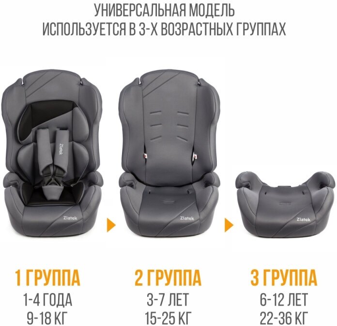 ZLATEK KRES3021 Автокресо детское 9-36кг (l-ll-lll) 1-12ет серое трансформер юкс ZLATEK