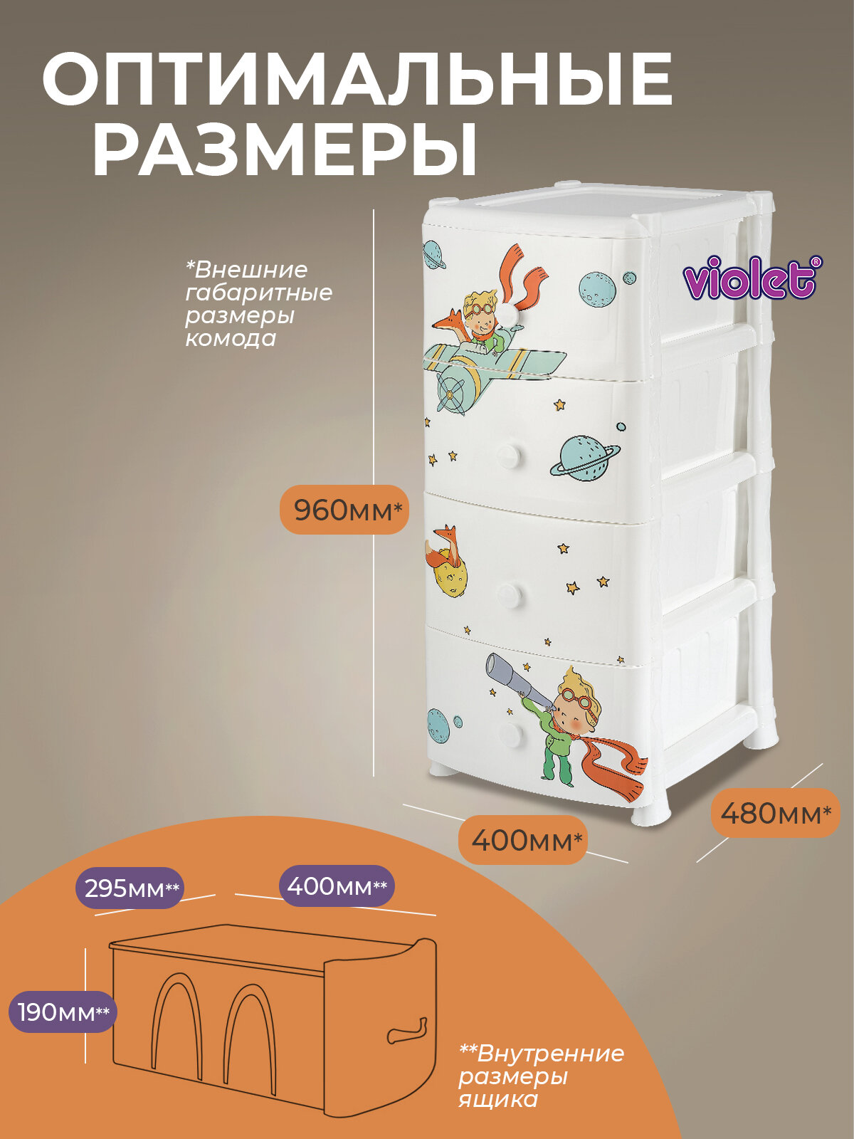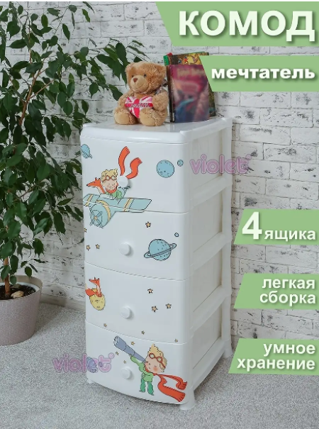 Комод пластиковый Violet с декором Мечтатель, 4 секции