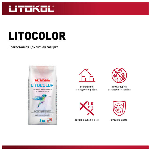 затирка для швов LITOKOL Litocolor 1-5мм 2кг светло-серый, арт.С10/2al