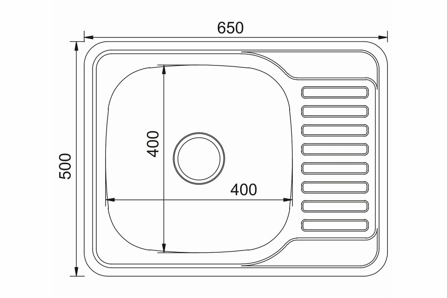 Врезная кухонная мойка Mixline из нержавеющей стали прямоугольная 50х65 выпуск 3 1/2 глубина 18 см, крыло правое