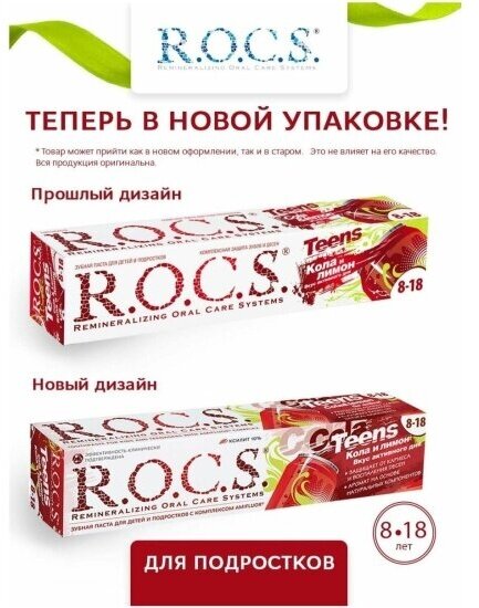 Зубная паста R.O.C.S. Teens Кола и Лимон (8-18 лет), 60 мл