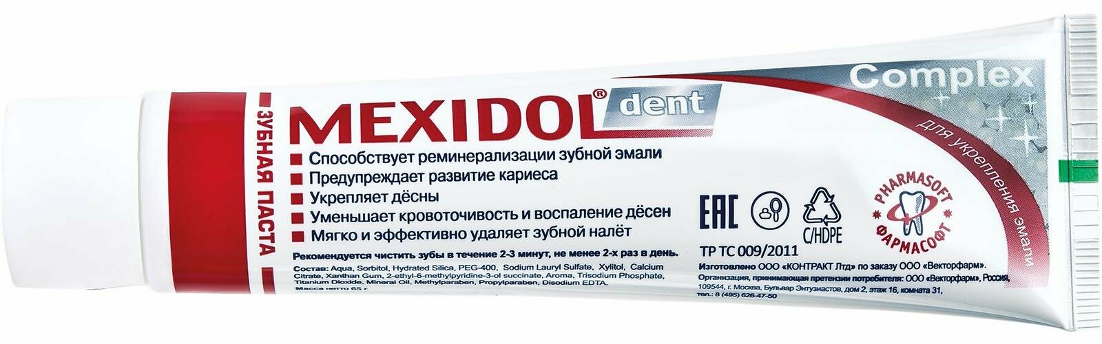 Зубная паста MEXIDOL Dent Complex 65 г (Мексидол дент Комплекс) для укрепления эмали с кальцием для комплексного ухода