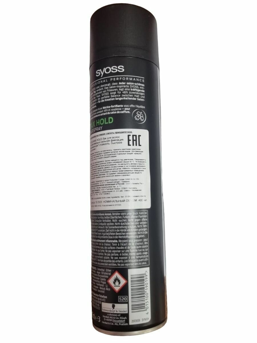 Купить Syoss Лак для волос Max hold, экстрасильная фиксация, 400 г, 400 мл