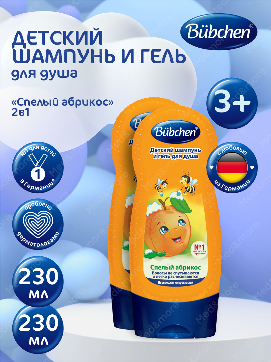 Купить Bubchen Детский шампунь и гель для душа Спелый абрикос 230 мл. х 2 шт.