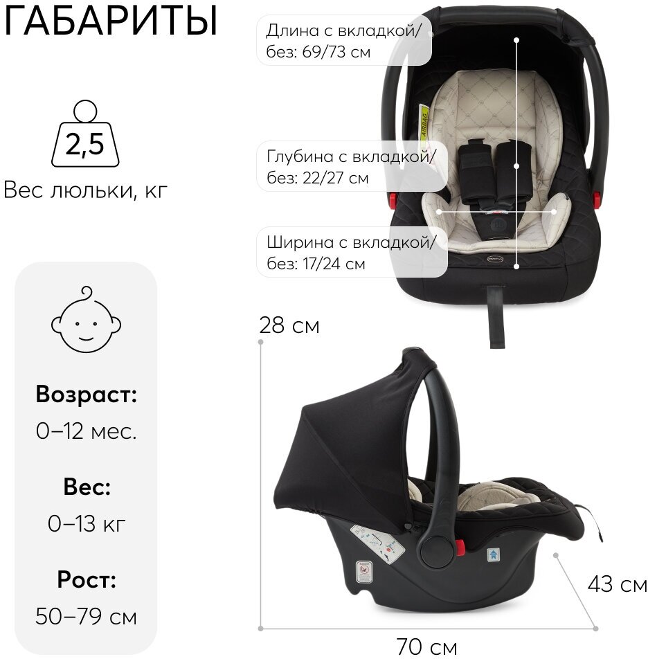 | Плюсы: | Очень удобная автолюлька. Ребенку комфортно. Вкладыш убрали в 2 месяца. |