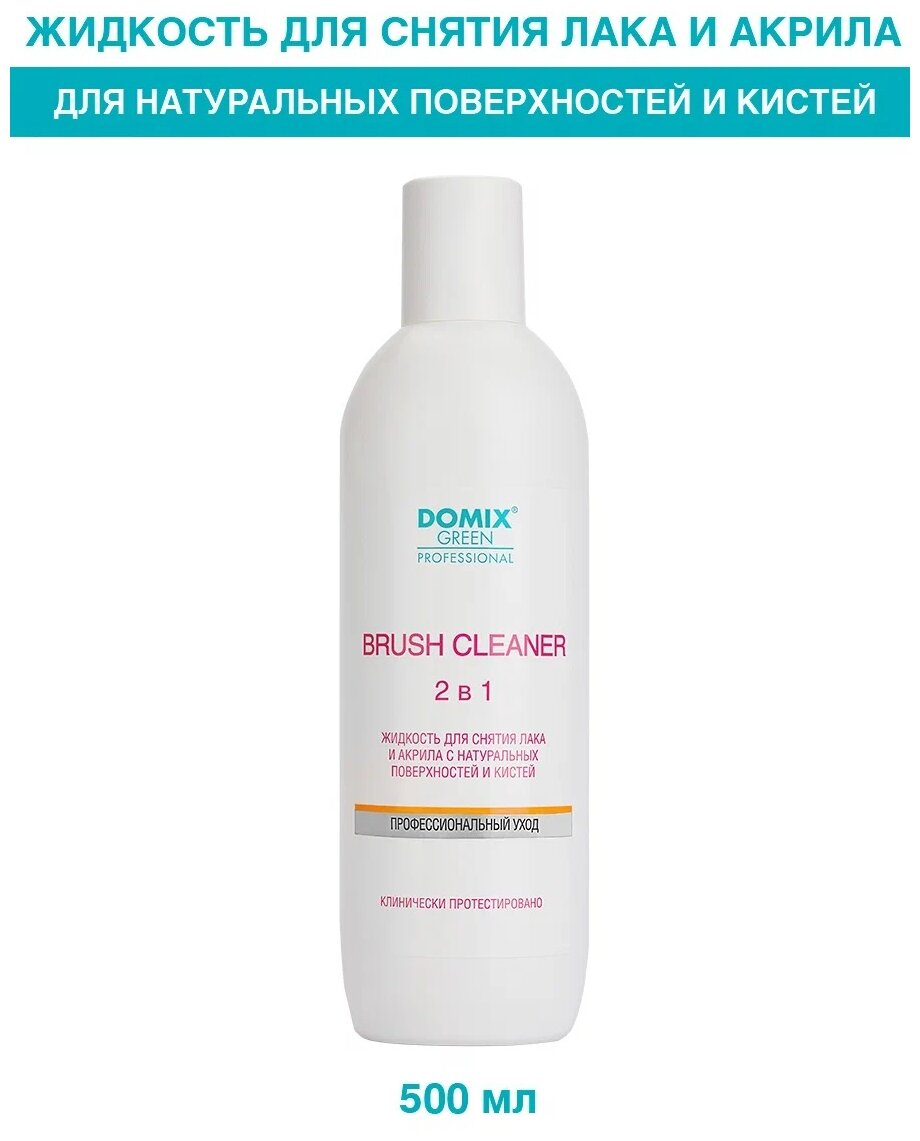 Domix Жидкость для снятия лака и акрила с натуральных поверхностей и кистей Brush Cleaner 2в1, 500 мл