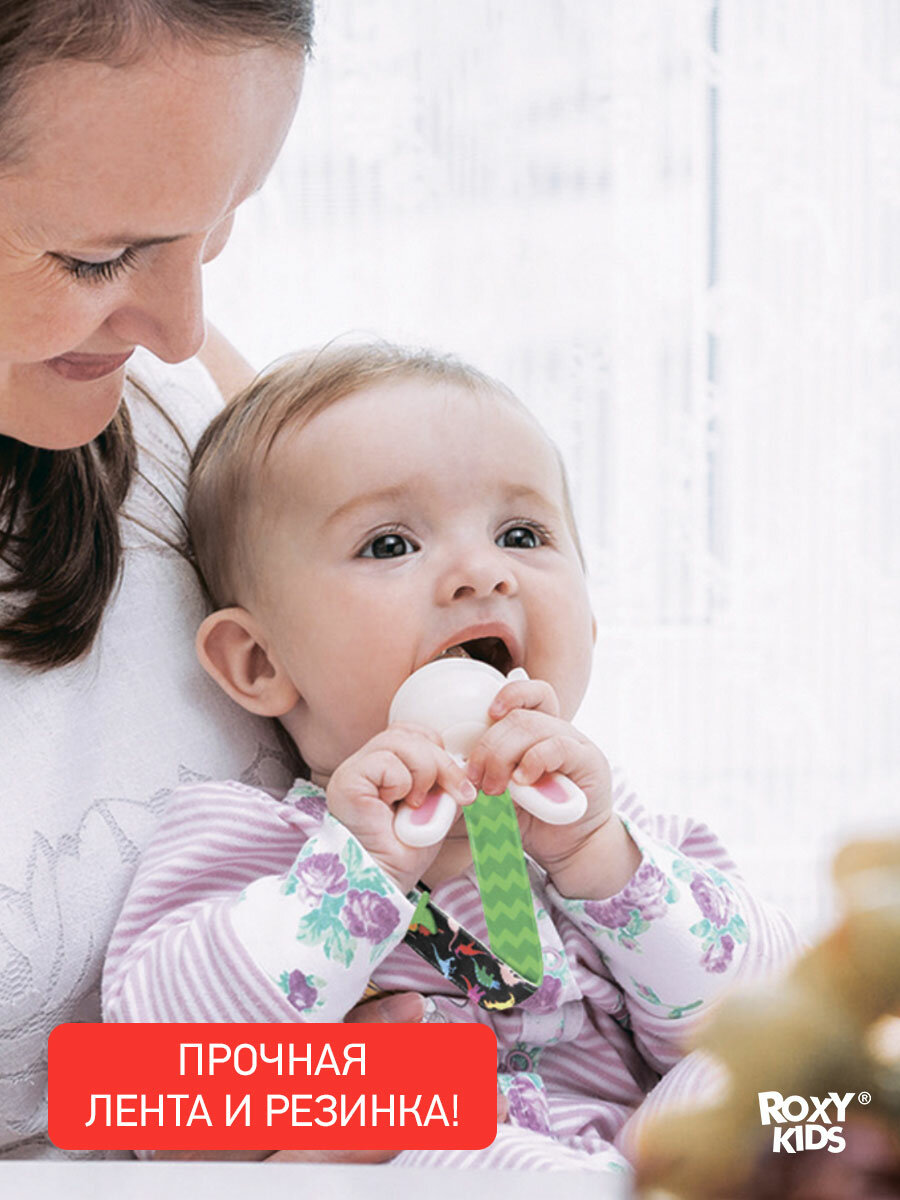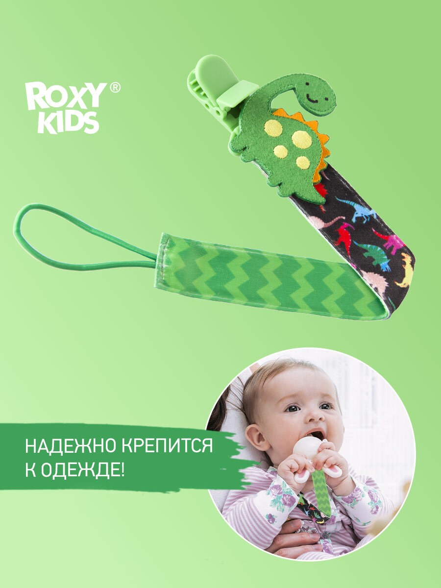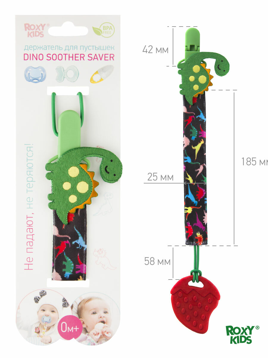СохранитьДержатель для пустышек Roxy-Kids с игрушкой Дино интересное: