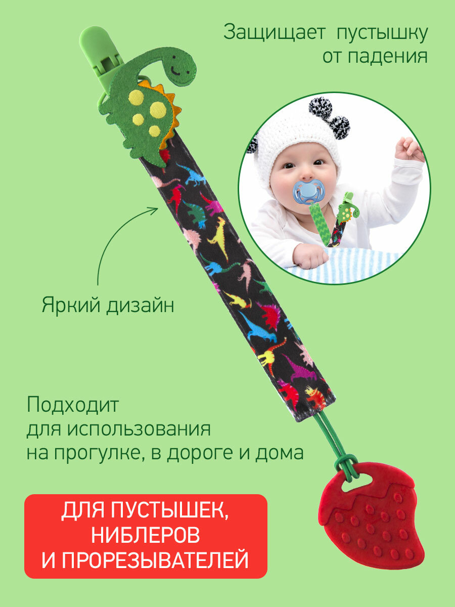 Держатель для пустышек с игрушкой Дино , ткань