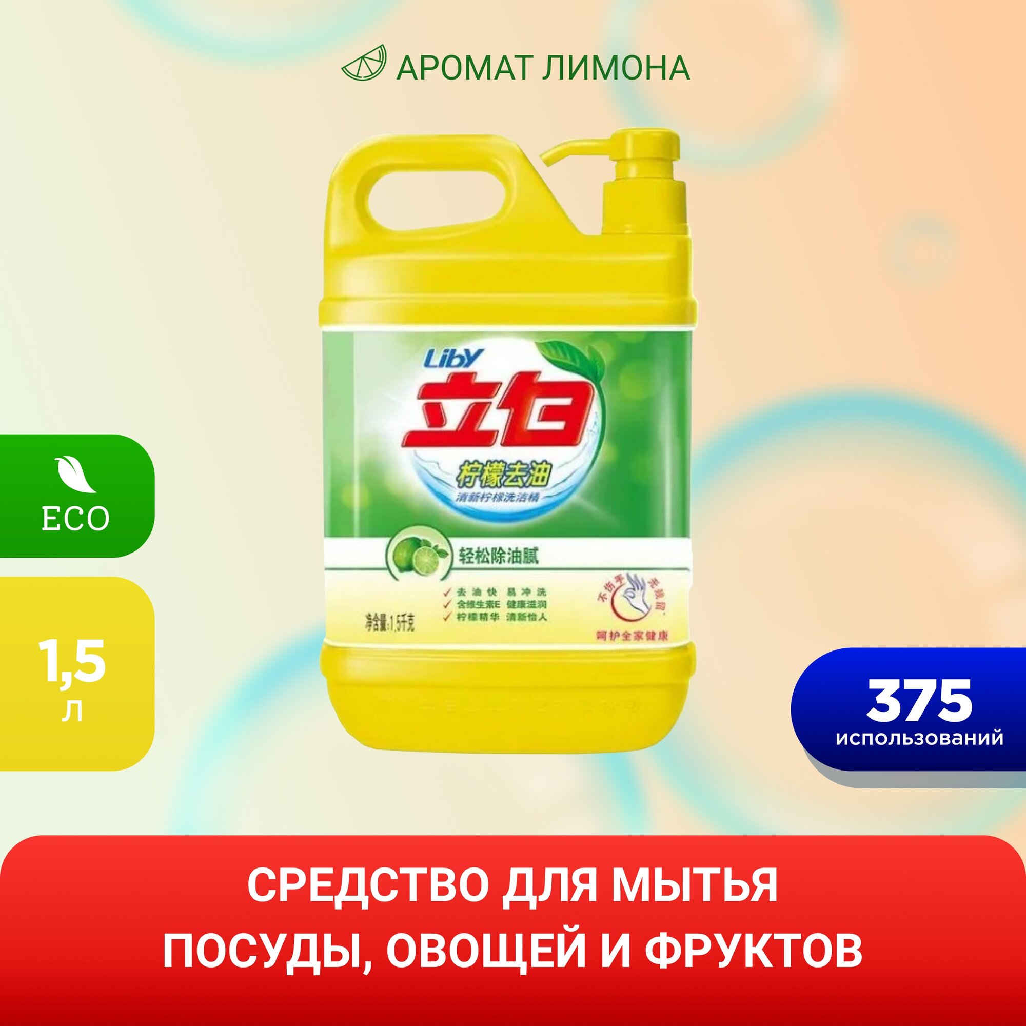 Средство для мытья посуды Liby Чистая посуда Лимон, 1.5 л