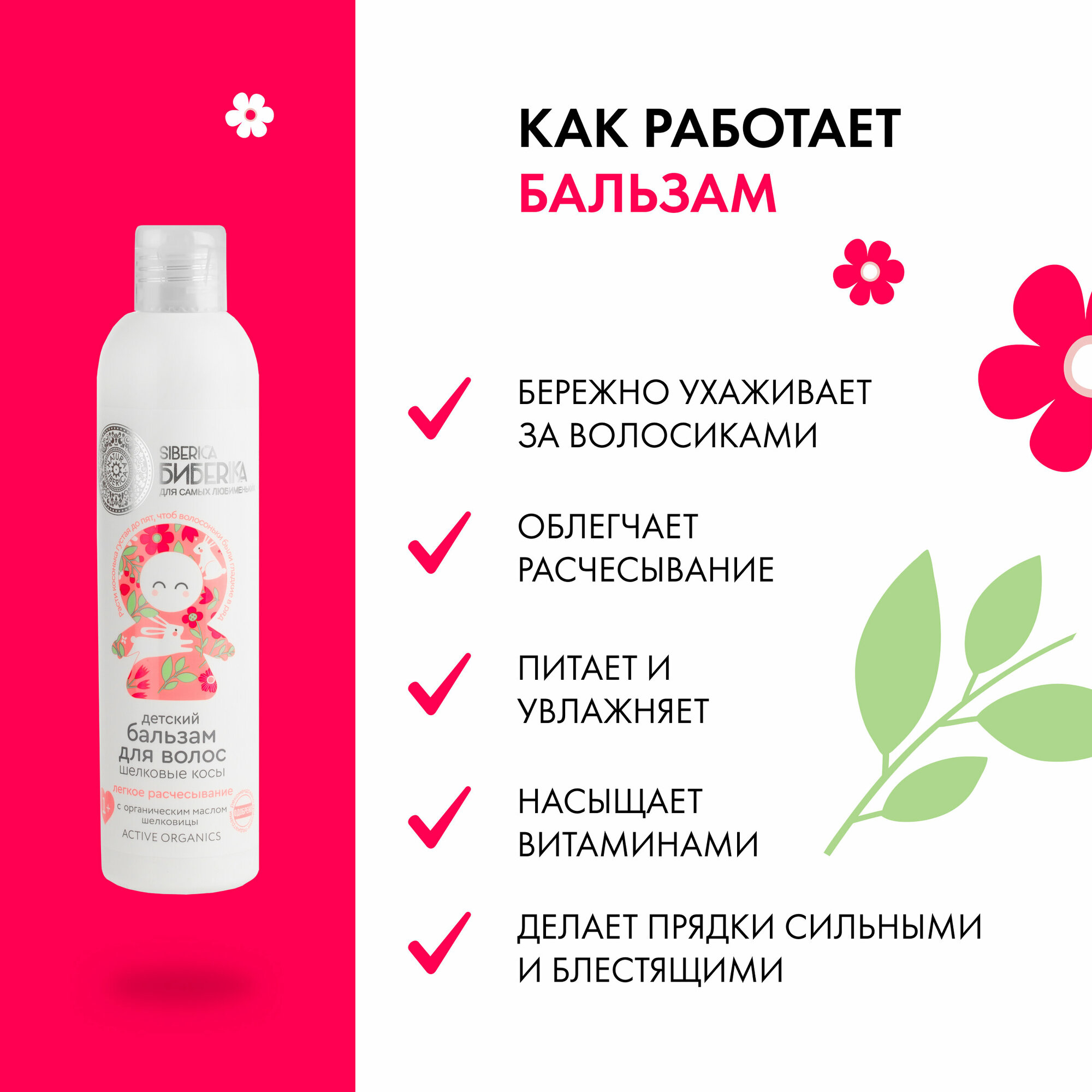 Siberica Biberika Детский бальзам для волос легкое расчесывание "Шелковые косы", 1+, 250 мл, Siberica Biberika