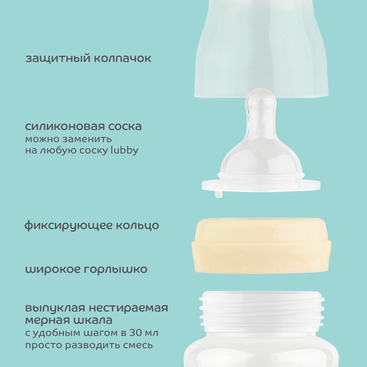 Lubby Бутылочка для кормления с соской молочной с широким горлом, от 0 мес, 120 мл.