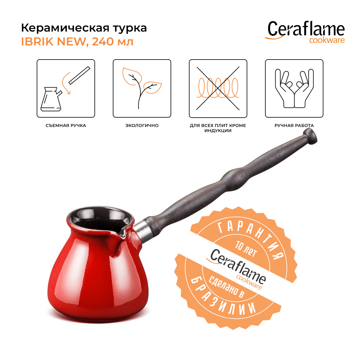 СохранитьТурка Ibriks NEW, объем 240 мл, материал керамика, цвет красный, Ceraflame, Бразилия, D93516 интересное: