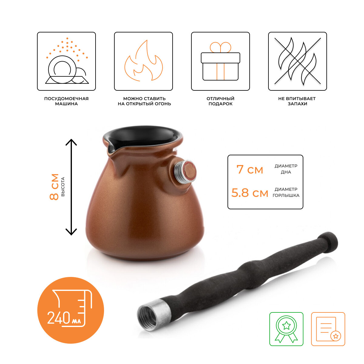 Турка керамическая Ceraflame Ibriks New 240 мл, цвет медный