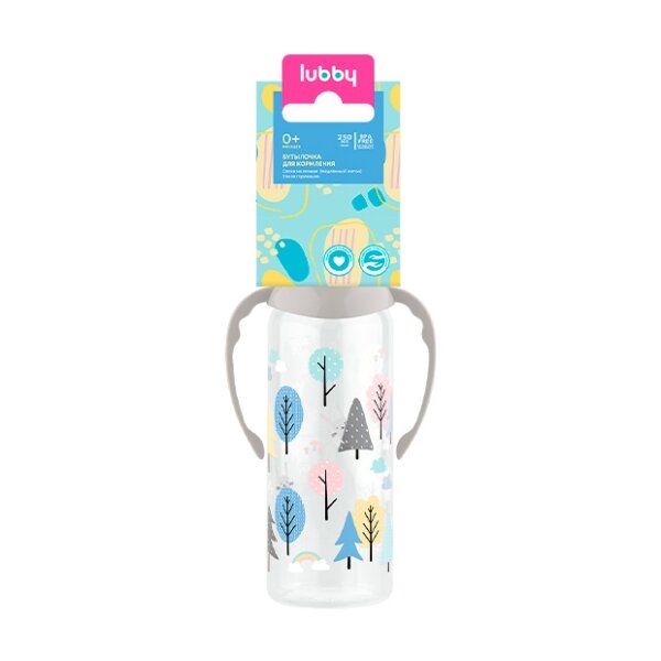 Lubby арт.11391/12 Бутылочка для кормления с соск. мол. и руч., от 0 мес, 250 мл, PP, сил.