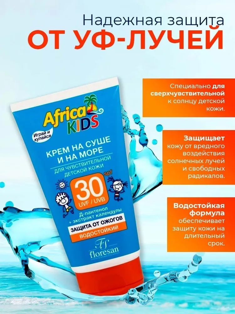 Крем детский защита от солнца на суше и на море (SPF 30) Floresan Africa kids (Флоресан) Ф-410, 150мл х 1шт