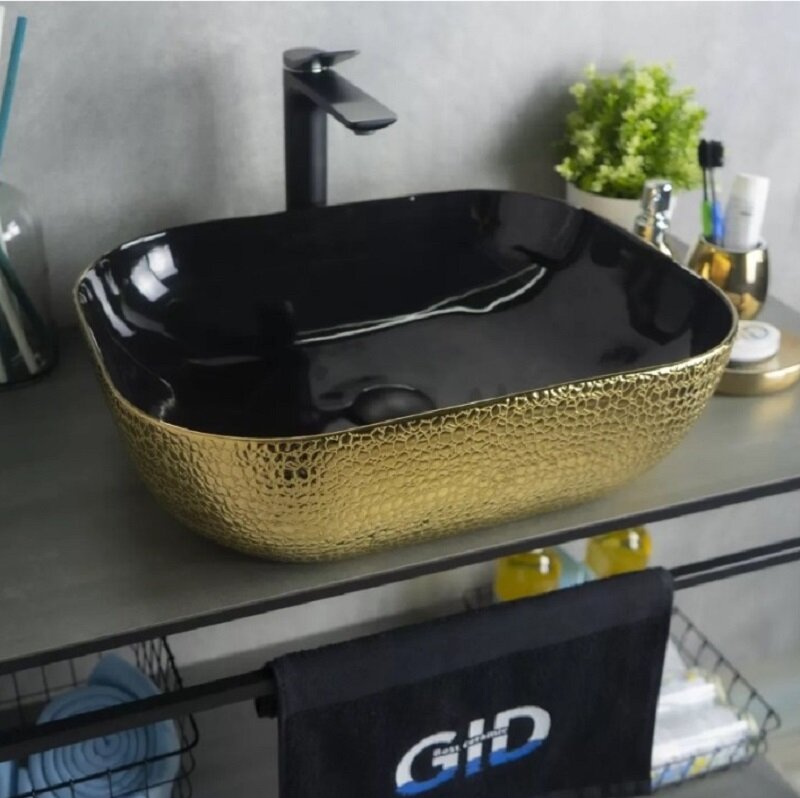 Раковина Gid Luxe Line D1302H024 накладная 50,5х40,5х13,5 черный/золото